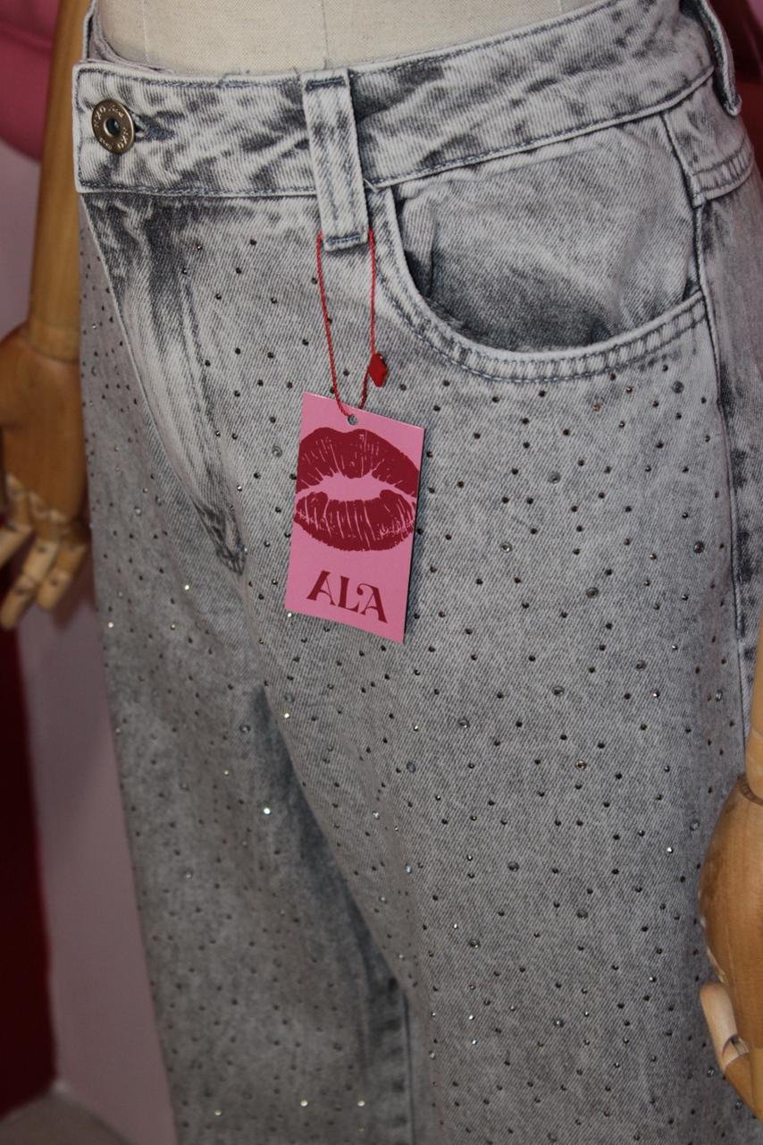 CALÇA WIDE BRILHO CINZA