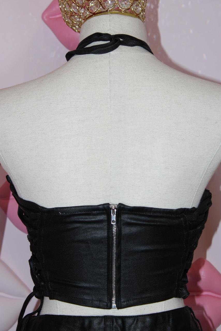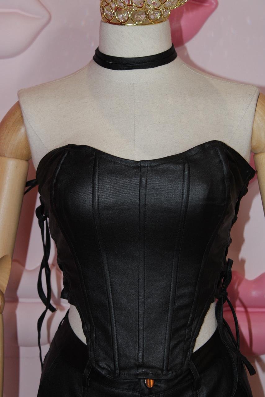 O Corset Courine em couro é estruturado, elegante e super marcante. Valoriza a cintura e transforma qualquer look com presença e sofisticação.